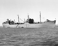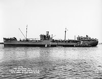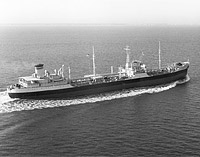 Shown as a civilian-manned MSTS tanker, probably in the 1950s.