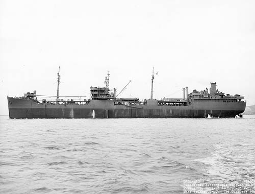 Delivered 92.3% complete, converted by Matson Navigation Co., San Francisco. Decomm. 19 Jul 46, to MC 24 May 47, stk. 10 Jun 47. Began reactivation 20 Oct 47, from MC 16 Jan 48 as USNT, to MSTS 1 Oct 49. In USN reserve 1949-50 (from MSTS 25 Jan 50). On list 20 Mar 50. To MSTS 21 Jul 50. To NDRF 27 Nov 57, from NDRF 23 May 58. From MA to Army 20 May 66 for use as powerfloat in Vietnam. |