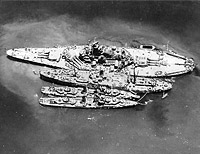 Providing battle damage repairs to USS South Dakota (BB-57) and two destroyers in November 1942, probably at Noumea, New Caledonia.