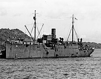 The ship had been laid up since October 1924 and was in questionable condition in 1941, with some items including the smokestack removed. Her four 5"/50 guns were still on board.