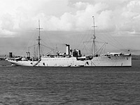 The forward half of the ship's well deck has been filled in and a rangefinder fitted forward as in Prometheus. The rest of the ship appears to remain largely as it was in 1918.