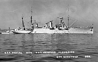 Shown circa the mid- or late 1920s with an Omaha (CL-4) class light cruiser in the background. Vestal supported cruisers of this class for many years.