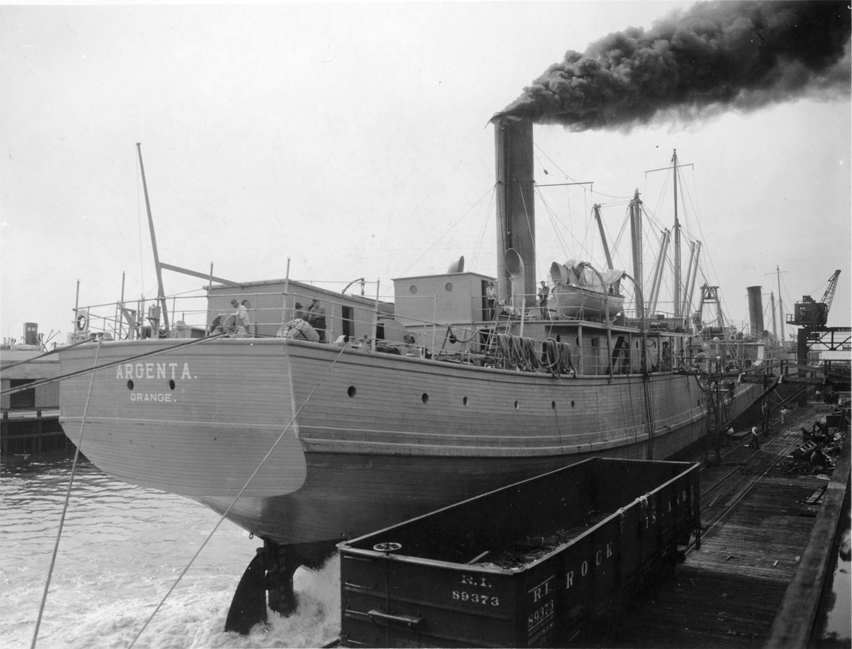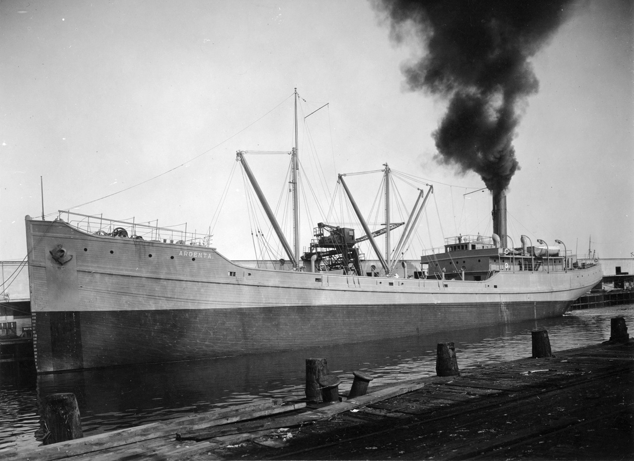 S.S. Argenta (Design 1006, EFC Hull 245) This ship, the last of the EFC's July 1917 order for 12 Design 1006 ships, was completed on 30 July 1919 and delivered on 1 August 1919. Here she is conducting dock trials (operating the propulsion plant while tied up to the pier). Photo No. None Source: U.S. National Archives, RG-32-M box 2 |