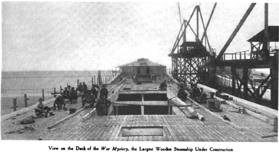 S.S. War Marvel (Design 1006 precursor) Shown fitting out afloat with her sister War Mystery alongside in a photo by the Western Newspaper Union that was received on 10 June 1918. They were built under a British order nominally from the Cunard Line and were completed respectively in January and February 1918. Photo No. 165-WW-504A-039 Source: U.S. National Archives, RG-165-WW |