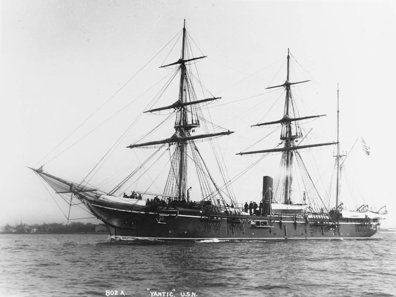 South and North Atlantic Stations, 1868-1875. This ship was added to the Yantic class to use a set of English engines captured in a blockade runner. She is shown here in her original Civil War configuration in a merged image from two on a stereoscopic card.