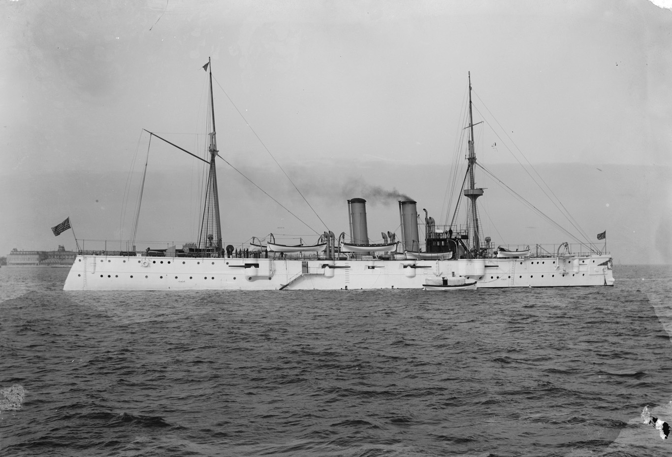 | Note: On 7 September 1988 Congress authorized seven cruisers including "two steel cruisers of about 3,000 tons displacement each" (Cincinnati and Raleigh). Intended to attack unescorted merchant ships, they had rapid fire guns, high steam power, and a fore-and-aft rig with considerable sail area. They proved to be crowded inside and poorly ventilated, and they received smaller, less powerful engines in 1900-02. |