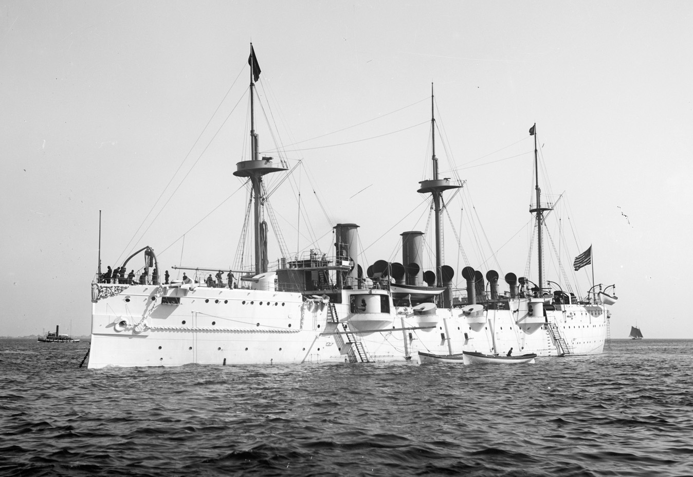 North Atlantic and Pacific Stations, 1890-1897. This ship duplicated the hull of Baltimore but was rigged with fore and aft sails only and had 6" rather than 8" guns on the forecastle and poop.