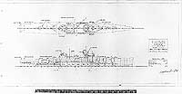 Photo #: S-511-47 "6" A.A. Cruiser - 6 Twin Turrets - Scheme ... not submitted" Preliminary design plan prepared for the General Board during the development of a light cruiser with rapid-firing 6"/47 anti-aircraft guns, which ultimately became the Worcester (CL-144) class. This plan, dated 20 October 1941, is for a 664-foot (waterline length) ship with twelve main battery guns. Originally labeled "Scheme E", the "E" has been crossed out. That letter was assigned several months later to a smaller, ten-gun design (see Photo # S-511-55). Scale of the original drawings is 1/32" = 1'. The original plan is in the 1939-1944 "Spring Styles Book" held by the Naval Historical Center. U.S. Naval Historical Center Photograph. Online Image: 408KB; 3000 x 1590 pixels |