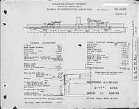 Photo #: S-584-010 "Proposed B. S. [Battleships] Nos. 38 & 39" ... Scheme "G" ... February 14, 1912 Preliminary design plan for Fiscal Year 1913 battleships. This design represented an enlarged version of the preceding Nevada (Battleship # 36) class (see Photo # S-584-009), modified to meet characteristics issued by the Navy’s General Board on 9 June 1911. The characteristics included two additional 14-inch guns and more underwater armor to enhance protection against mines, torpedoes, and plunging shell fire. This plan shows a ship 55 feet longer and 3,800 tons larger than Nevada that fully met the Board’s goals. Pennsylvania (Battleship # 38) was built to a generally similar design (see Photo # S-584-041). This plan provides twelve 14-inch guns, turbine machinery, and a speed of 21 knots in a ship 630 feet long on the load water line (L.W.L.), 93 feet in beam, with a normal displacement of 31,300 tons. Note: The original document was ink on paper (black on white). The original plan is in the 1911-1925 "Spring Styles Book". U.S. Naval History and Heritage Command Photograph. Online Image: 288KB; 1500 x 1200 pixels |
