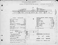 Photo #: S-584-011 "Proposed B. S. [Battleships] Nos. 38 & 39" ... Scheme "I" ... February 28, 1912 Preliminary design plan for Fiscal Year 1913 battleships. This drawing was one of four sent to the Navy’s General Board on 2 March 1911 to illustrate options of interest. This plan shows a ship having deeper draught than Scheme "G" (see Photo # S-584-010), illustrating the benefits to overall design of a deeper hull than specified in General Board characteristics. The design was 20 feet shorter than Scheme "G", with significant weight shifted from machinery to protection to allow thicker armor. Reciprocating steam machinery gave one-half knot less speed than the turbines in Scheme "G". This plan provides twelve 14-inch guns, reciprocating steam machinery, and a speed of 20.5 knots in a ship 610 feet long on the load water line (L.W.L.), 95.2 feet in beam, with a normal displacement of 31,300 tons. Note: The original document was ink on paper (black on white). The original plan is in the 1911-1925 "Spring Styles Book". U.S. Naval History and Heritage Command Photograph. Online Image: 259KB; 1500 x 1200 pixels |