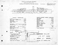 Photo #: S-584-023 "Proposed B. S. [Battleship] 38" ... August 24, 1912 (Completed Sept.3, 1912) Preliminary design plan for Pennsylvania (Battleship # 38). This design continued the concept of "all-or-nothing" armor protection introduced in the previous Nevada (Battleship # 36) class (see Photo S-584-009), reducing the area protected by armor but increasing the thickness of armor significantly where it was provided. This drawing represents a nearly final version of the design. A notable change from earlier preliminary designs is shifting the underwater side armor from the shell to an internal bulkhead. The battleships Pennsylvania (Battleship # 38) and Arizona (Battleship # 39) were built to this design. This plan provides twelve 14-inch guns, turbine machinery, and a speed of 21 knots in a ship 600 feet long on the load water line (L.W.L.), 97 feet, 0 1/2 inches in beam, with a normal displacement of 31,400 tons. Note: The original document was ink on paper (black on white). The original plan is in the 1911-1925 "Spring Styles Book". U.S. Naval History and Heritage Command Photograph. Online Image: 251KB; 1500 x 1200 pixels |