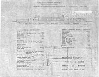 Photo #: S-584-030 Proposed Battleship ... May 17, 1913 Preliminary design plan for a new battleship. This plan may have been developed to investigate the implications of reducing required speed to a more standard 22 knots in a new capital ship design concept that previously was based upon provision of comparatively high speed (25 knots.) This plan resembles in general layout the earlier drawings for a fast battleship dated 14 February 1913 (see Photo # S-584-027) and 16 April 1913 (see Photo # S-584-029). It is not known what circulation was made of this design. This plan provides twelve 14-inch guns and a speed of 22 knots in a ship 640 feet long on the load water line (L.W.L.), 100 feet in beam, with a normal displacement of 36,500 tons. No ships were built of this type. Note: The original document was a blueprint (white on dark blue). The original plan is in the 1911-1925 "Spring Styles Book". U.S. Naval History and Heritage Command Photograph. Online Image: 359KB; 1500 x 1195 pixels |