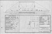 Photo #: S-584-055 Preliminary Design No.117 for a Scout Cruiser ... April 1915 Preliminary design plan for a large scout cruiser, prepared to support General Board discussions concerning the characteristics sought in future cruisers. This plan provides ten 6-inch guns and a speed of 35 knots in a ship 800 feet long on the load water line, 70 feet in beam, with a normal displacement of 17,650 tons. Some 1830 tons of armor was provided, including 8-inch side armor over 296 feet by 17 feet 6 inches amidships and 3-inch deck protection. This design was second in a set of 11 designs undertaken as a group during 21 to 29 April 1915 to explore tradeoffs among armament, protection, and size in large scout cruisers capable of 35 knots speed. This design series took Preliminary Design No.112 (see Photo # S-584-050) as a baseline. Ultimately, however, no ships of this large type were built. Note: The original document was ink on linen (black on white). The original plan is in the 1911-1925 "Spring Styles Book". U.S. Naval Historical Center Photograph. Online Image: 271KB; 1600 x 1075 pixels |