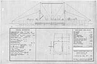 Photo #: S-584-067 Preliminary Design No.128 for a Scout Cruiser ... May 1915 Preliminary design plan for a large scout cruiser, prepared to support General Board discussions concerning the characteristics sought in future cruisers. This plan provided two 14-inch guns and nine 5-inch guns and a speed of 35 knots in a ship 760 feet long on the load water line, 71 feet in beam, with a normal displacement of 16,500 tons. This design included 938 tons of armor protection, including 4-inch side armor over 296 feet by 17 feet 6 inches amidships and 1.5-inch deck protection, adding 6,000 tons displacement over design No.112. This design was second in a set of three requested as a group at the end of April 1915, apparently to further explore tradeoffs among armament, protection, and size in scout cruisers. This design series took Preliminary Design No.112 (see Photo # S-584-050) as a baseline. Ultimately, however, no ships of this type were built. Note: The original document was a blueprint (white on blue). The original plan is in the 1911-1925 "Spring Styles Book". U.S. Naval Historical Center Photograph. Online Image: 207KB; 1600 x 1070 pixels |
