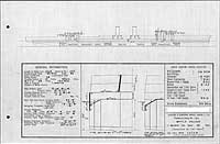 Photo #: S-584-072 Preliminary Design Plan for a Battle Cruiser ... May 1915 Preliminary design plan for a battle cruiser prepared for Captain John Hood of the General Board, apparently requested informally as part of the Boards wide-ranging review of possible cruiser type ships that was underway at the time. This design presented a much larger ship than any other battleship or cruiser yet built for the Navy and presumably was found to be unacceptably large and costly. No such ship was built and the battle cruisers ultimately requested and approved in the Fiscal Year 1917 program were somewhat smaller (see Photo # S-584-102). This plan provides eight 16-inch and twenty 6-inch guns, turbine machinery, and a speed of 29 knots in a ship 1063 feet long on the load water line (L.W.L.), 100 feet.in beam, with a normal displacement of 56, 500 tons. Note: The original document was ink on linen (black on white). The original plan is in the 1911-1925 "Spring Styles Book". U.S. Naval Historical Center Photograph. Online Image: 265KB; 1600 x 1070 pixels |
