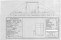 Photo #: S-584-073 Preliminary Design No.134 for a Scout Cruiser ... May 1915 Preliminary design plan for a large scout cruiser, prepared to support General Board discussions concerning the characteristics sought in future cruisers. This plan provided four 16-inch guns and ten 6-inch guns and a speed of 30 knots in a ship 695 feet long on the load water line, 70 feet in beam, with a normal displacement of 13,500 tons. This design included only 364 tons for 4-inch armor for the heavy gun barbettes and front shields. This design was requested by Captain John Hood, head of the General Board committee responsible for ship design, apparently to explore to what degree a speed reduction from 35 to 30 knots might reduce the size of such minimally-protected scout cruisers carrying the heaviest guns. This design series took Preliminary Design No.112 (see Photo # S-584-050) as a baseline. Ultimately, however, no ships of this type were built. Note: The original document was a blueprint (white on blue). The original plan is in the 1911-1925 "Spring Styles Book". U.S. Naval Historical Center Photograph. Online Image: 208KB; 1600 x 1075 pixels |