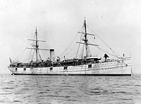 Probably photographed in mid-1898 soon after conversion to an auxiliary cruiser with a main battery of ten 6" guns, of which four were on deck and six in the hull.