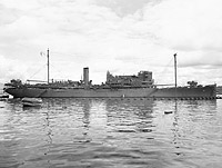 Four of her eight 5"/51 guns have been removed and her anti-aircraft battery has been strengthened.