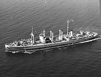 USS Nitro (AE-2) Underway on 15 July 1943. The ship now has two 1.1" quad mounts in about the same locations as on her sister. Her foremast has been replaced by a topmast on the forward goalpost and her radar mast has been enlarged. The large boat davits aft have also been removed. Photo No. 80-G-410258 Source: U.S. Naval History and Heritage Command. |