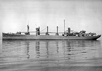 USS Pyro (AE-1) Near the Mare Island Navy Yard on 16 October 1942. In addition to receiving two additional 3" guns and some 20mm guns as in Nitro she received two 1.1" quad mounts, one forward and one on the stern. Her foremast has been replaced by a topmast on the forward goalpost and radar has been fitted on her mainmast. Photo No. 19-N-36717 Source: U.S. National Archives, RG-19-LCM |