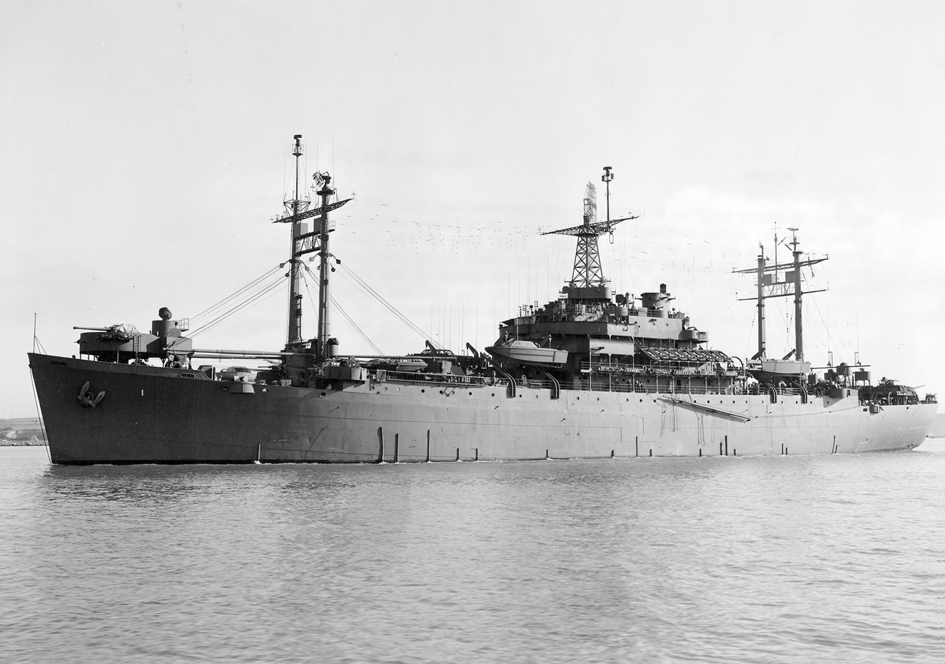 Photographed circa early 1946. This photograph was released on 17 May 1946 with a press story stating that she was to be the floating press headquarters for 169 journalists covering Operation Crossroads, the atomic bomb tests at Bikini.