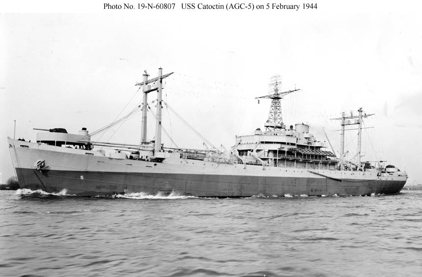 Photographed on 22 August 1944, shortly after the landings in southern France. She was force flagship for that operation, and is probably anchored off one of the invasion beaches.