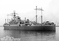 Photographed by the Norfolk Navy Yard on 21 April 1943 soon after her AGC conversion.