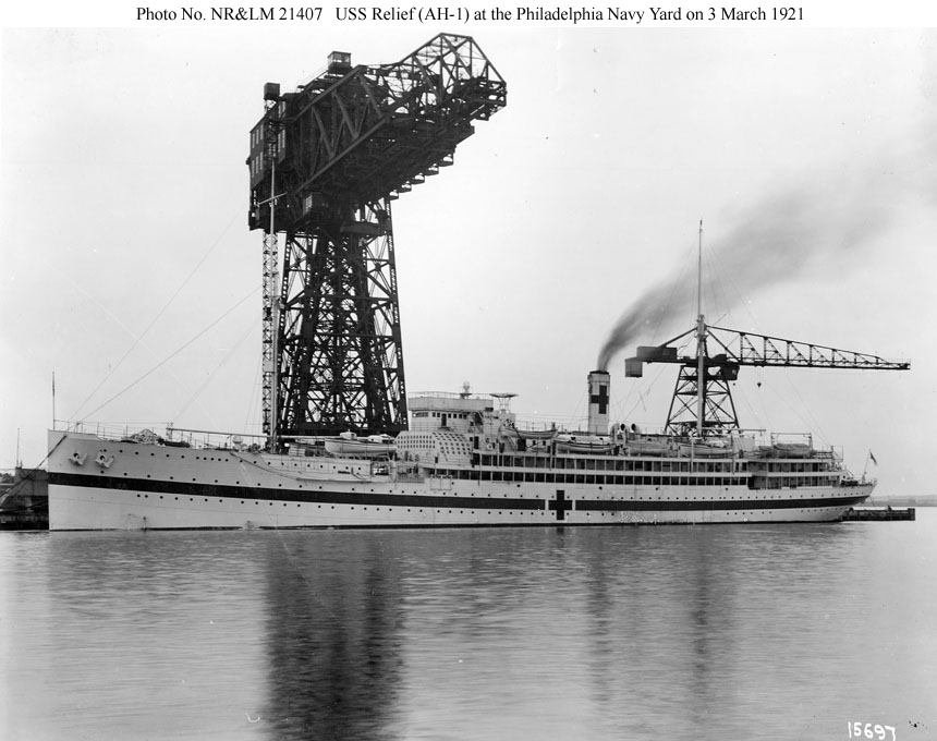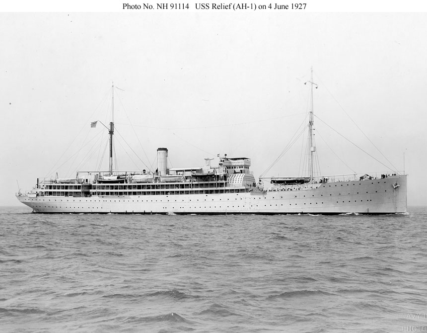 USS Relief (AH-1) Photographed on 4 June 1927 Photo No. NH 91114 Source: U.S. Naval History and Heritage Command. |