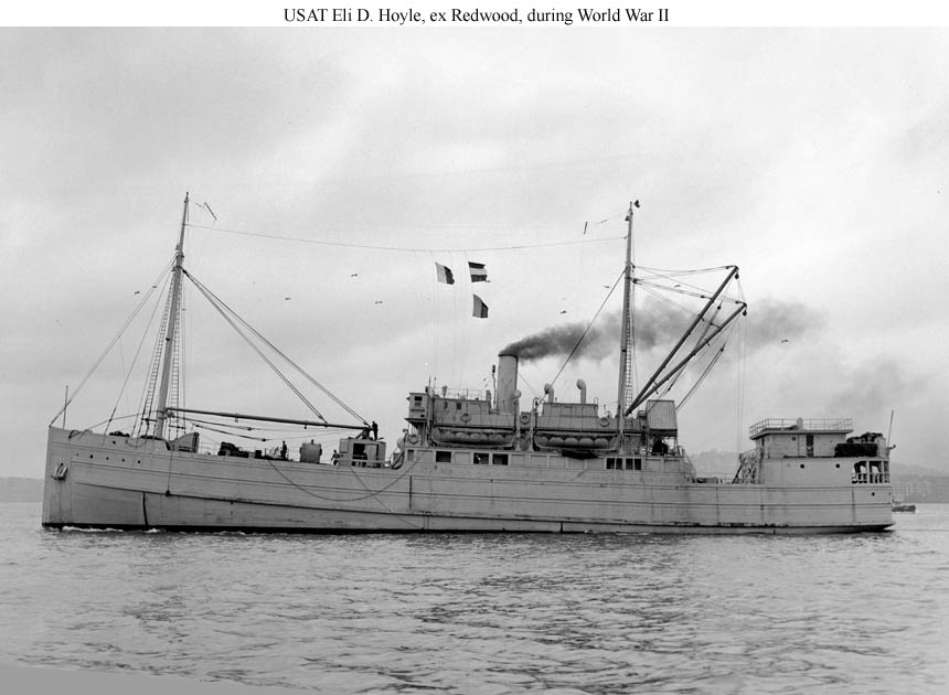 Originally the wooden-hulled cargo ship Redwood, this ship was acquired by the Army in early 1941 and was named USAT Redwood as shown here until mid-1941.
