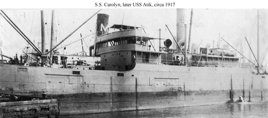 During World War II she became USS Atik ("AK-101"), a decoy "Q-ship" lost with all hands on 27 March 1942 as a result of an action with the German submarine U-123.