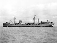 USS Cuyama (AO-3) Off the U.S. Naval Station, Seattle, Washington, on 25 May 1944. Her updated armament includes 5"/38 guns forward and aft. Photo No. 19-N-65587 Source: U.S. National Archives, RG-19-LCM. |