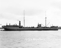 USS Neches (AO-5) Photographed in the 1920s or 1930s. This ship is carrying her full designed armament of 4-5"/51 and 2-3"/50 AA guns. Photo No. NH 69431 Source: U.S. Naval History and Heritage Command. |