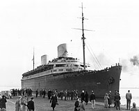 Docking at Bremerhaven on 24 March 1946. This ship returned to sea in 1950s as the French luxury liner Liberté.