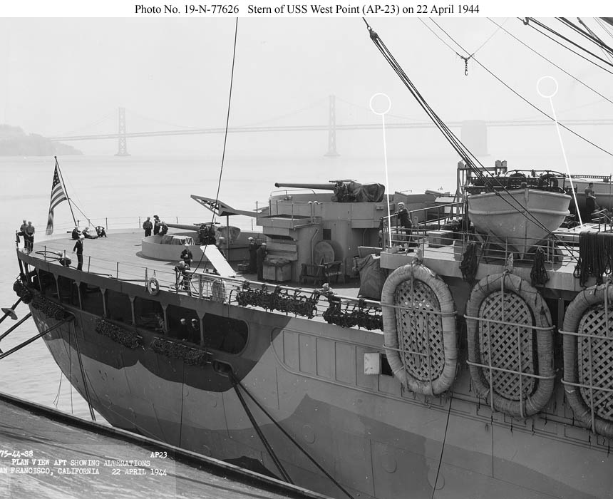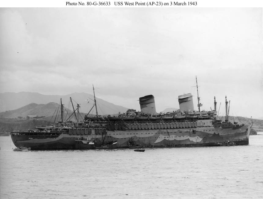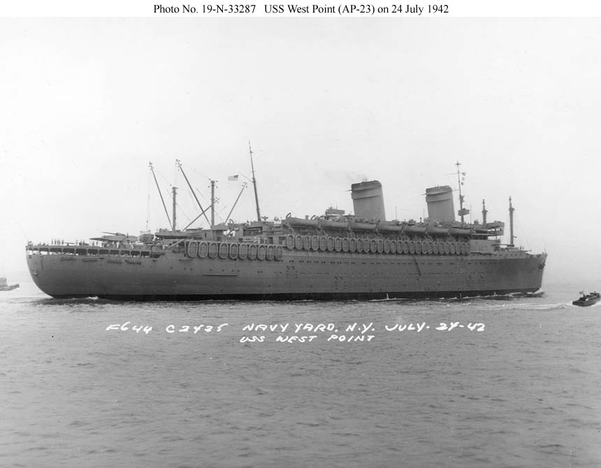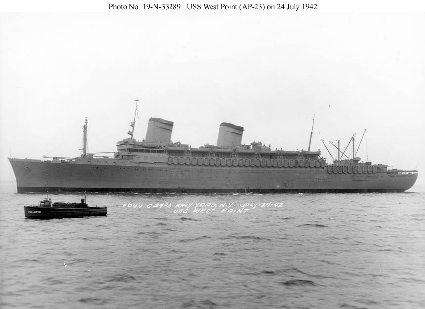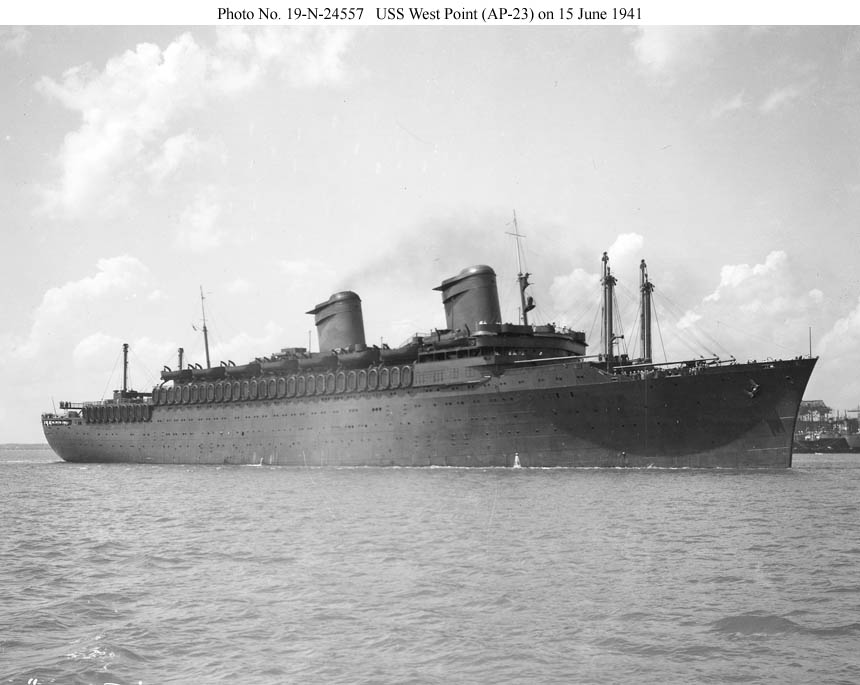 Shown on 2 June 1941 beginning conversion to USS West Point (AP-23).