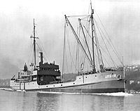 The abandoned wreck of Rescuer at Seal Cape, Alaska, on 15 April 1943.