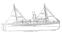 Conestoga was one of a pair of large seagoing tugs built to the same design by the Maryland Steel Co. for the Philadelphia and Reading Transportation Line of Philadelphia in 1904-1905, the other being Monocacy (later USS Genesee). Designed to tow coal barges along the U.S. East Coast, they were among the largest tugs in the U.S. merchant marine. This drawing was published in the August 1904 issue of the journal Marine Engineering.