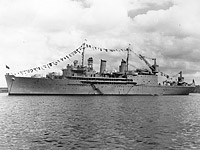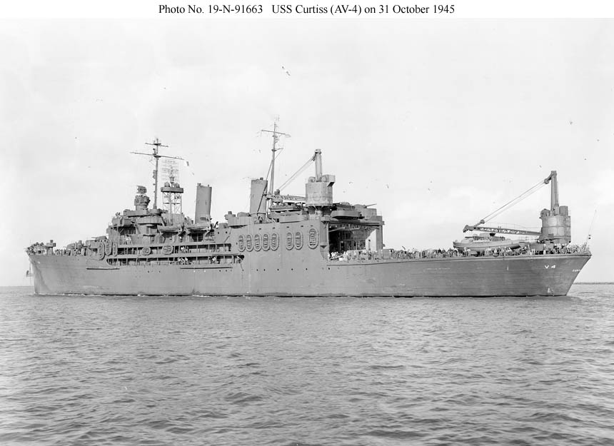 In Narragansett Bay on 8 August 1942. All four 5"/38 guns are in enclosed mounts, probably fitted during an overhaul at Boston in April 1942. Her sister Curtiss never received this upgrade.
