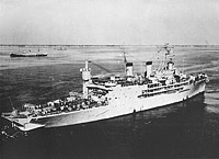 Off the Boston Navy Yard on 10 May 1944 in Measure 32 Design 5Ax camouflage. She was out of commission between 1950 and 1957.
