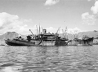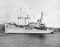 At anchor on 13 February 1945 in Tanapag Harbor, Saipan.