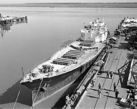 Alongside a pier during trials, probably at Orange, Texas, in October 1941.