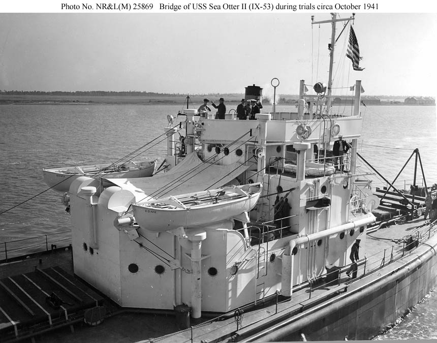 A view of her bridge structure during trials, probably at Orange, Texas, in October 1941.