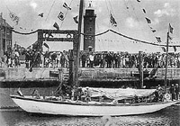 Arriving at Cuxhaven, Germany, after winning the Bermuda to Cuxhaven race that was part of the 1936 Olympic Games.