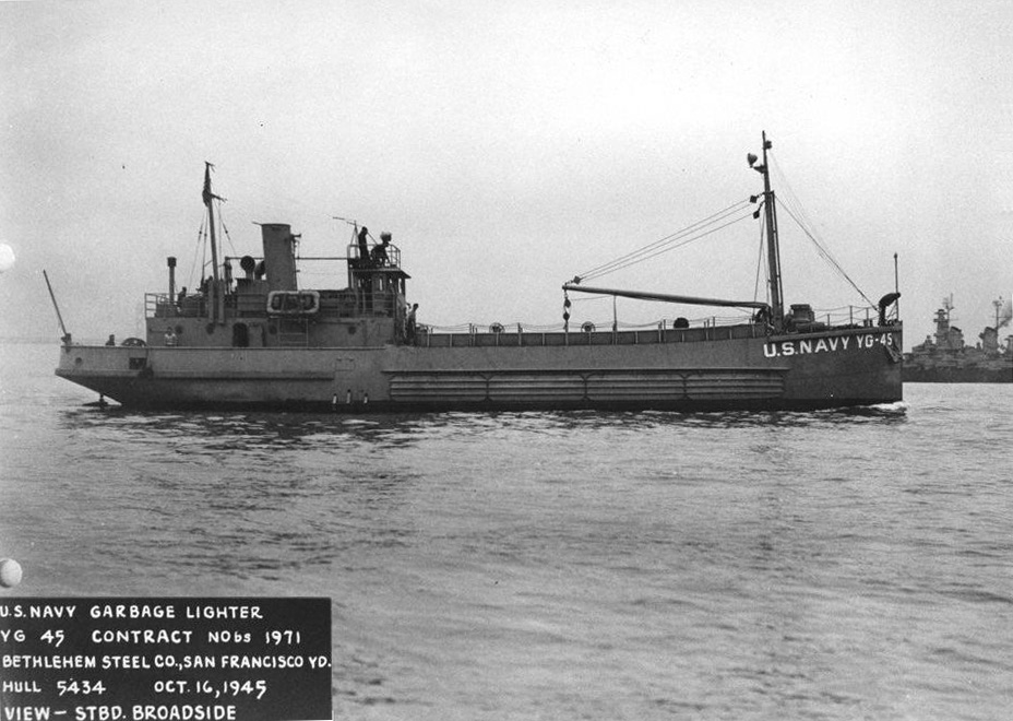 YG-51 departing Danang Harbor circa mid-1968 into the South China Sea with side doors open dumping trash.
