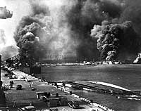 Photo #: KN-32031 (Color) "The Japanese Sneak Attack on Pearl Harbor" Charcoal and chalk by Commander Griffith Bailey Coale, USNR, Official U.S. Navy Combat Artist, 1944. For more information on this artwork, see: Photo # KN-32031 (complete caption). Courtesy of the U.S. Navy Art Center, Washington, D.C. Official U.S. Navy Photograph. Online Image: 73KB; 900 x 300 pixels Reproductions of this image may also be available through the National Archives photographic reproduction system as Photo # 428-KN-32031 |