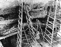 Photo #: NH 84007 USS Oglala (CM-4) Closeup view of torpedo damage to the ship's port side midships hull, taken on 4 July 1942 in drydock at the Pearl Harbor Navy Yard. Oglala had been sunk beside Pearl Harbor's 1010 dock during the 7 December 1941 Japanese attack, but was not herself directly hit. The heavy damage to her hull seen here was caused by the explosion a aerial torpedo on USS Helena (CL-50), which was alongside some eight feet distant from Oglala. Courtesy of the Naval Historical Foundation. Collection of The Honorable James V. Forrestal. Official U.S. Navy Photograph, from the collections of the Historical Center. Online Image: 147KB; 740 x 605 pixels |