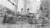 Photo #: NH 105268 USS Los Angeles (ID # 1470) A view on deck looking aft possibly taken during a 1917 inspection by the Fifth Naval District. This tanker was commissioned at New Orleans on 9 August 1917 and decommissioned at New York on 17 January 1919. U.S. Naval History and Heritage Command Photograph. Online Image: 73KB; 740 x 450 pixels |