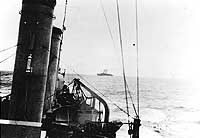 Photo #: NH 77168 S.S. New York (American Passenger Liner, 1888) Steaming through the war zone while operating as a troop transport in 1917 or early 1918. Photographed from on board USS Warrington (Destroyer # 30), which was escorting the transport as she approached the end of a trans-Atlantic voyage from the United States. Courtesy of Gustavus C. Robbins, 1973. U.S. Naval History and Heritage Command Photograph. Online Image: 63KB; 740 x 535 pixels |