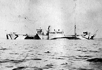 Saetia, a 2873 gross ton (6375 tons displacement) freighter, was completed at Wilmington, Delaware, in March 1918 and placed in commission by the Navy on the First of that month as USS Saetia (ID # 2317). After modifications, including the installation of guns, she loaded an Army cargo of quartermaster's supplies and joined a trans-Atlantic convoy at New York. Arriving with the convoy at Brest, France, at the end of March, the ship moved to Rochefort, France, to offload her cargo and returned to Philadelphia, Pennsylvania, in early May. Between May and November Saetia made three similar voyages to France, delivering the first cargo at Quiberon, the second in the Gironde River, and the third at Bordeaux, France. Near the end of the last of these voyages, while approaching the Delaware River en route to Philadelphia on 9 November 1918, Saetia struck a mine, probably laid by the German submarine U-117, in the vicinity of the Fenwick Island Lightship and sank in 20 fathoms of water. The entire crew took to lifeboats and was saved, although 13 men were injured.