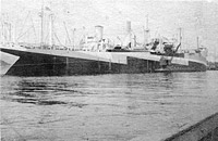 S.S. Rondo, a 7549 gross ton (15,300 tons displacement) freighter, was built at Rotterdam, The Netherlands, in 1914 for commercial service under the Dutch flag. She was seized by the U.S. Government in March 1918, turned over to the Navy and, late in that month, placed in commission as USS Rondo (ID # 2488). The ship made two voyages to and from France between May and September 1918. She was then fitted as an animal transport and made one trip in that role, steaming to Uruguay and back during the first months of 1919. Rondo's final U.S. Navy mission took her to England in late May with a cargo of food. Continuing on to Amsterdam, she was decommissioned in June 1919 and returned to her owners. Following further civilian employment, S.S. Rondo was scrapped in 1933.