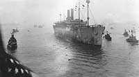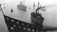 Note the submarine chaser (left foreground) and other welcoming